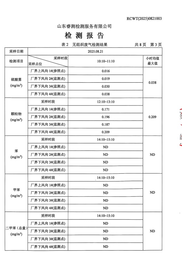 2025年8月廢氣、噪聲檢測(cè)報(bào)告